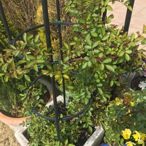去年、友人から貰った薔薇🌹 ツルが伸びる伸びる〜 有刺鉄線みたいで扱い注意です(^^; 🌹お名前不明でした
