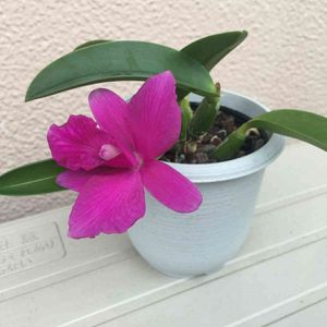 今度は4輪〜そういう咲き方するのね☺️💕 咲いてくれるカトレアはこの子だけ💦 年2回咲くんだ〜😳💕 2019.5 花後購入 2019.8 シースで枯れた 2020.4 開花3輪(初 2020.7 開花3輪