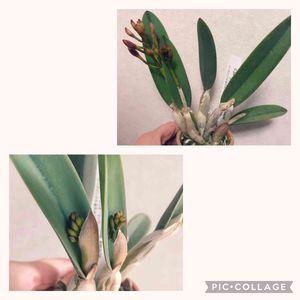 とうとう、蕾💕びっくりした〜❗️😳 3年近く沈黙してたミニカトレア達。 根も葉も増えず死んでる疑惑も拭えなかったけど、GSでアドバイス頂きせっせと日に当て水やりしてました🥰 他のも芽や根が少しずつ出ました☺️🌱