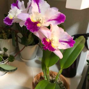 ~カトレア~ サクラキャンディ ラブキャッスル 2鉢のカトレアがほぼ満開です♥️ 今は温室要らずで簡単に咲かせられるんですよね。 お掃除が行き届いてなくても(笑) お部屋がとても華やかになってます✨