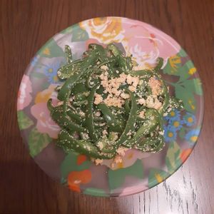 もう夏も終わりですが、今年バジルを初収穫。 トマトの株元に植えていたので、トマトの影でなかなか成長せず、トマトの栽培が終わった頃にやっと収穫できる葉っぱの量になりました。 ジェノベーゼソースを作ってパスタにしました。 パスタは低カロリーの蒟蒻効果を使用。 子どもたちが冷凍ちゃんぽんの麺ばかり食べて具があまってもったいないので、ちゃんぽんの具をパスタの具として使用しました。なので見た目があまりパスタに見えませんね笑