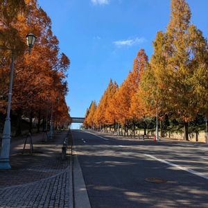 こんにちは〜☀ 暖かな秋日和ですね 桃山大学のメタセコイヤの並木道です👏😃🎶🎉 初めて見るメタセコイヤの実が沢山付いています⤴️ インパチェンスのバラ咲きが満開に〜🈵👏🥰🎶 多肉植物に可愛い黄色い花が咲いているわ✌️😃 黄色いセンリョウの実がなっています✨ まだ野鳥さん来ていないので今のうちに📸パチリ!!