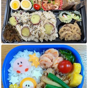 🍱水曜日はお弁当の日🍱 1枚目・幼稚園の孫もお弁当日でした。今回のリクエストは、『カービィ&ワドルディ』らしいです😄 『何が美味しかった❓』と聞いたら今回も『ミニトマト🍅』でした💦 ばあちゃんのお弁当は、さつま芋🍠ご飯・ゴーヤの佃煮・鶏のさっぱり煮🥚🥦・ごぼうサラダ・竹輪の明太バター・かぼちゃ🎃のベーコン塩煮・ぶり大根・アスパラの豚🐷巻き・ぐるぐる🌀キャベツの酢の物・蓮根のソボロ炒めでした😋 お彼岸でおはぎを作りたかったのですが、忙し過ぎて今回はパス🙅♀️しました😅 2枚目・22日のニャンニャン祭り・みちのすけさんのニャンニャン祭りにも大遅刻です💦💦 主人が草刈りから帰って来たら、ズボン👖や靴下🧦に草の匂いが付いています。みーちゃんは草🌱の匂いが大好きで、ズボンや靴下にまとわりついています(笑)中々離れてくれません。しろちゃんは全く興味なしです。 3枚目・トイレ🚽にまで付いてくるしろちゃん😅抱っこされてご機嫌さんです😻 4枚目・左7/16の半夏生。 右8/30の半夏生です。 7/3の真理さんの投稿で、葉緑素が抜かれるわけではなく隠れるだけなので、花が終われば又緑色に戻る。と教えて頂きました。 配達の時に半夏生が咲いているのでチェックしていました。やっと緑色になったのを見られました🙌🙌 教えて頂きありがとうございました🙇♀️ 5枚目・左上・今年はくぼ柿も生り年です。子供の頃は木に登って(おてんばでした)柿をおやつ代わりに食べていました。 右上・棗(なつめ)の実です。配達先で沢山頂きました。干してから蒸す様です。どうなりますやら😅 左下・我が家のイチジクです。今年も沢山収穫出来ています。そのままパクリ😋サラダに入れたり、生ハムのせたりしたり😋 右下はイチジクジャムです。ヨーグルトに入れたり、パンに付けたりして楽しんでいます😋