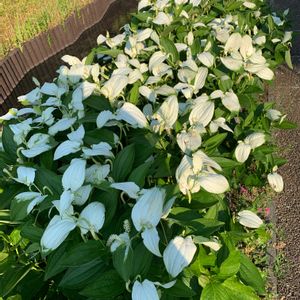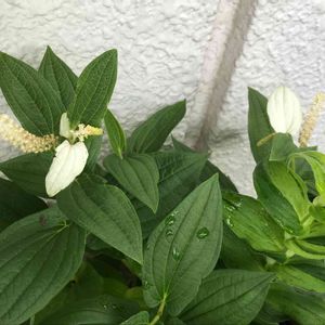今朝他の人が投稿してたので我が家のを見に行ったら一株だけ葉っぱが白く変化した半夏生を発見
