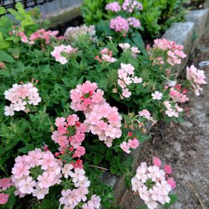 🧡スーパーベナ ピーチメルバ🧡 初めは優しいピーチ色から濃いカラーへ 混ざって可愛い😍 そして後ろ側は ユーフォルビア ダイヤモンドフロストと 頂いたPWのフロックス オープニングアウト ピンクアドット✨ 5月19日に投稿したピンクはもう少し濃いカラーでしたが、今度は薄め ✂️してから1ヶ月で、またもや 満開に💖 連続開花の速さに驚き感動です👏✨✨