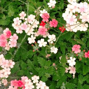 2回夏を越してくれて、3年目の開花です!バーベナ強いですが、ハダニ被害が凄いです… 3枚目は挿し芽株です。アジュガの勢いに押されてます😅