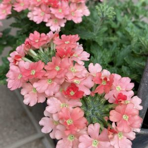 PWの「スーパーベナ ピーチメルバ」🧡🩷🧡 植え付けから2週間が経ちました。 ③④⑤はお迎えしてすぐのpicです。 アプリコットの花色と小花。 大好き要素が詰まったお花です❣️