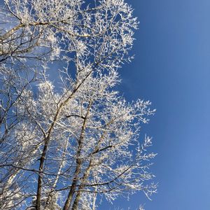 雪化粧した木々が美しい✨ 八ヶ岳南麓では 雪の後は八ヶ岳ブルーの空が 広がるのが定番🎵 木々についた雪の華は 午前中だけ見られます😄