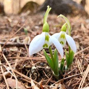 双子のスノードロップ✨ 咲きました‼️ 昨年より芽が出るのが遅かった割には 咲く時期はほぼ同じ そのせいなのか? 2年目だからなのか?背丈は低め でもやっぱり可愛い😍 ✨✨✨ 【スノードロップ 】 ヒガンバナ科ガランサス属