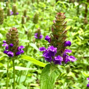 ウツボグサが咲き始めています‼️ この紫が好きで 増えるがままにしていたら 他の植物を浸食するほどに😅 匍匐性でどんどん伸びて 通路も覆っているので 少しずつ抜いています…😆 ✨✨✨ 【ウツボグサ(空穂草、靫草)】 Prunella vulgaris L. subsp. asiatica (Nakai) H.Hara シソ科ウツボグサ属の多年草 高さ 10〜30cm 花期 6〜8月 別名 カゴソウ(夏枯草) 薬用植物、ハーブ、食用