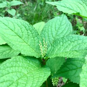大きな葉っぱに小さな花穂🌟🌱 静御前とその亡霊の舞姿が 和名の由来らしい…🤔 ✨✨✨ 【フタリシズカ(二人静)】 Chloranthus serratus センリョウ科の多年草 高さ 30〜60cm 花期 4〜6月