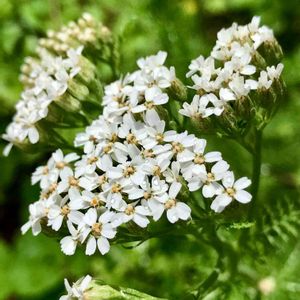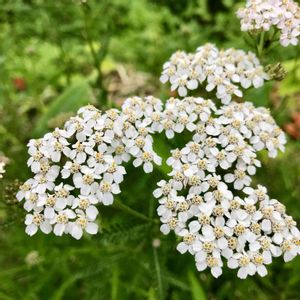 ノコギリソウが咲き始めました‼️ 昨年、一昨年は葉っぱだけで 何だろう?と思っていたら🌿 今年は花茎が伸びてきて 初めてノコギリソウと判明🌟😃 ✨✨✨ 【セイヨウノコギリソウ(西洋鋸草)】 Achillea millefolium 別名 アキレア、ヤロウ、コモンヤロウ(ハーブ名) キク科ノコギリソウ属の多年草 高さ 50〜100cm 花期 6〜9月 生薬 葉→サラダ 花、茎、葉→ハーブティー 生花→精油 ※ノコギリソウとの違い ノコギリソウの葉は、切れ込みが浅く、葉巾が狭く質が硬い。 セイヨウノコギリソウの葉は、深裂し、葉巾が広く柔らかい。