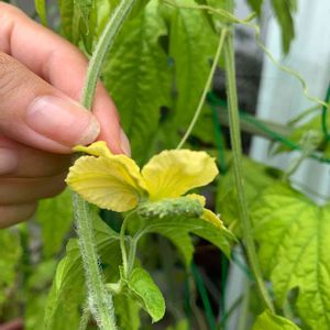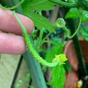 お花が咲いた後のミニミニのゴーヤちゃん✨大きくな〜れ!!