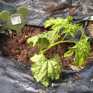 マクワウリ(金俵甜瓜)はまだ定植できていない。葉っぱに黄色いぶちぶちがあるのが気になる。病気?