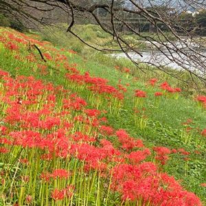 きのう雨の止み間に散歩してきた河原です 年々お花も増えて楽しめます 今年は近くの名所、巾着田も 感染防止のために咲く前に刈り取ったそうですよ どれも捨てがたく3枚アップしました🎶