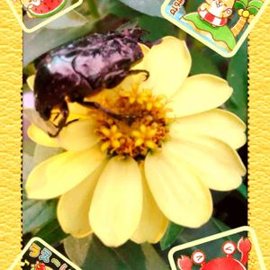 🎶黄金虫は、金持ちだ〜🎶 ジニアちゃんに黄金虫❣️ 黄金虫を調べると…『幸運』との事❣️ 知らんかった😅 何でも〜良いと言う物は、良い様に捉えて〜 良い事が有ります様に〜🤞 虫が嫌いな方〜🙏🙏🙏