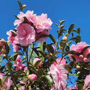 おはようございます☺ 昨日用事で出掛けた際に見かけた ピンクのサザンカ💗 乙女サザンカでしょうか。 青空に映えてました 12月もよろしくお願いします😊 今年も、早いものであと1ヵ月ですね~…