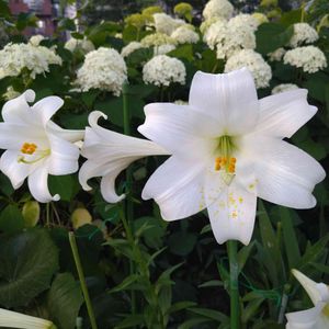 御池通りにたくさん咲いている🌼アナベル🌼をバックに、🌿テッポウユリ🌿のお花も咲き始めました🤗🎶💗