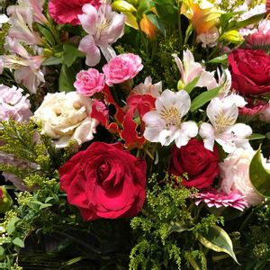 今日のお花の💗アルストロメリア💗 書道展が開催されていて、お祝いアレンジメントの中に、薔薇🌹やカーネーションと一緒に生けられていたアルストロメリアのお花です🤗💕