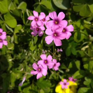今日のお花の🌸カタバミ🌸 御池通りの歩道脇に咲いていた色鮮やかなピンク色のイモカタバミです🤚