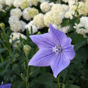 御池通りのたくさんのアナベルをバックに、咲き始めた💜キキョウ💜のお花です🤗🎶💗