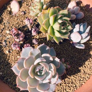 我が家の単品植えだったエケベリアetcたち、根っこがぱんぱんだったので取り敢えずひとまとめにしてみました😅 根付けばいいな