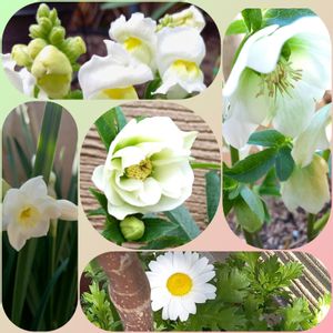 1日は忘れないようにお水やりに決めてます。 お天気もいいし、ウキウキでやっちゃいました😚 しかし、なんですと?明日は雨だって😨😱😭 自称ホワイトガーデンは花盛りだよ💗 タグはごちゃごちゃするのでこちらから上から時計回り。 金魚草、クリロ一重、マーガレット、水仙、真ん中クリロ八重で~す。
