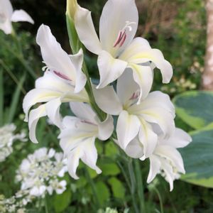 原種グラジオラスでしょうか? 清楚でホワイトガーデンの美人さんです。