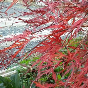 ベニシダレとアオシダレの二種類のモミジが植えてあります。 植えて一年くらいで無理やり植え替えてしまったので、アオシダレは上半分が枯れてしまいましたが、なんとか復活🤗 猛暑の年は葉が焼けてしまい紅葉が楽しめませんでしたが、去年は綺麗に紅葉していました。