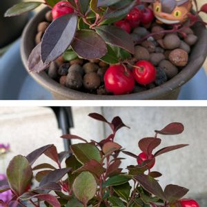 🏷️真っ赤な火曜日 🏷️毎月16日はトトロの日 お庭パトロール🏃🏻♀️ ① チェッカーベリー🍒 可愛くて 寄せ植えせずに 一鉢に入れました 以前 お花が咲いたのに 夏でダメになったから こんどは夏越しさせたいなぁ🤗 ② ガーデンシクラメン銅葉 グロブラリアブルーアイ オレガノケントビューティ と寄せ植えしています グロブラリアブルーアイ 青い目のようなお花が咲くのが楽しみです🔮