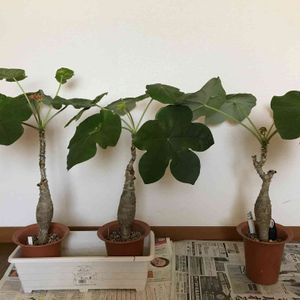 サンゴアブラギリ 珊瑚油桐 2015.8.19 @¥1468 台風も去り、ベランダに帰る前に 記念写真。 普通の珊瑚油桐が、なぜ3鉢も?! 寒さに弱い。とのことで冬季が心配。 でも3鉢買えば、ひとつくらは 生き残るだろう。 思ったより安いし。と、 3鉢購入した。 (枯れる前提なのか?! そしたら、意外と丈夫で元気な 珊瑚油桐さん。 一回も植え替えなし。 (おいおい。 基部をもっと太くしたい場合は 切り戻すのかなぁ。 それはなんか可哀想。 でも3人もいるから、1人くらい切って みてもいいかなぁ。 悩むなぁ。。。 いつ、どのあたりを、 切ったあとどうすれば??? アドバイスお願い致します♪