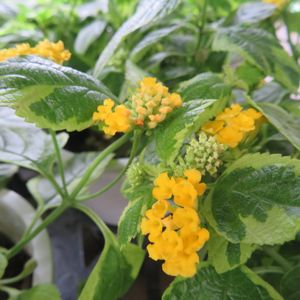 🍀 ランタナ・アロハ(ヴァリエガタ) 🍀 斑入りの黄花ランタナは初めて見たかも❣️