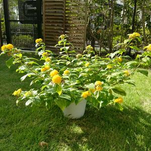 斑入りランタナ *アロハ* 綺麗な斑入りの葉🌿に黄色💛の鮮やかさ◡̈︎*♚︎‧*˚✩︎‧₊˚ お花が一際目立ちます🌼 (ლ˘╰╯˘).。.:*♡
