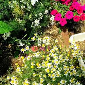 そろそろ😃この風景にもサヨナラかな😭 チドリソウの白とカモミールを片付けないと🌿