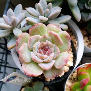 こんばんは⭐ 今日は昨日と違って暖かい日でした🌞 寄せ植えセットの中に入っていたこの子レットベルベット? 札が付いてないからニックネームを付けて育ててみよう😄 中心が赤くなりそうな気配🔍