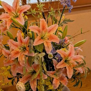 孫の1歳の誕生日㊗️をお祝いしました。 久しぶりの婿との対面。 (普段は宇都宮勤務で週末は帰って来る) 孫二人(3歳と1歳)は、大喜びです。 食事して、娘宅で🎂を食べて、、、 楽しい一時でした。 花はユリをメインにデルフィニュウムやバラの入った豪華な花でした💐 一升餅(誕生餅)は、米一升をリックに入れて背負わせましたが ひっくり返ってしまいました🤣🤣🤣