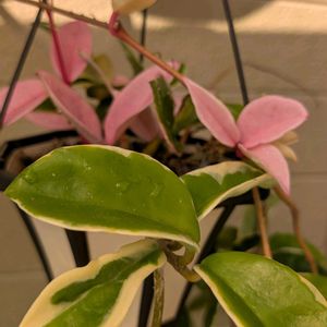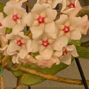 【ホヤ】(サクララン🌸)が咲きました。 今まで咲いた事のない株だったので、蕾が付いた時はうれしくて見守りました。 大差ない花ですが、微妙に違う花はかわいいです〜 ①花②1の葉っぱ🍃 ③花④3の葉っぱ🍃 葉が違いが花の違いかな❓️