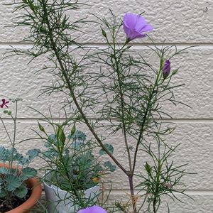 今年種まきした、【オキシペタラム】(ブルースター)がたくさん咲きだしました。 ブルー🩵の星が一杯でかわいいの🥰 【トレニア】と(スーパーチュニア)のごちゃ混ぜ💜🤍❤️💛🧡寄植え ボリュームが出てきて素敵になりました。 春にお迎えした、【ミニバラ】(れんげ) また、咲きだしました。 ミニミニでとってもかわいいのよ💕🤍🥰