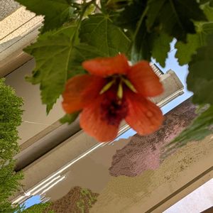 【アブチロン】 旅行中🚿水を切らして枯れかけたけど、何とか復活。 そして花を🧡♥️咲かせてくれてありがとう🙏😁