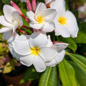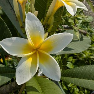 【プルメリア】(ブリザード) 3枝ある1つが咲いてきました。 あと、2枝も小さいけど蕾が付いてます。