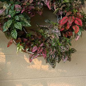 【ヒポエステス】のドーナツ寄植え 初めて作りました😁 カラーリーフがかわいいでしょう❓️ 日なただとすぐ水が切れてシナ〜っとするから、日陰に移動。 元気よくグングン伸びてきたから、カット✂️しなくちゃ〜