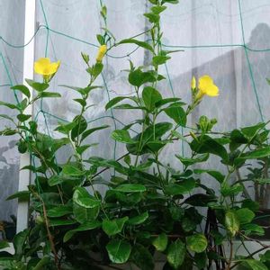 冬越ししたマンデビラ、先日一輪花が咲いて、今年は、グリーンカーテンにしてみました。