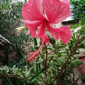 ハイビスカス🌺 葉っぱの斑入りが気に入って、、 この子も冬越し組💖 でも、ハイビスカスは、青空が似合うね。