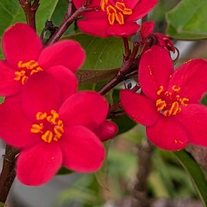 ①【ベンガルヤハズカズラ💜】 優しい💜が爽やかなお花で大好きです ②【ペラルゴニウム】 シルバーリーフと真紅の可愛い花。 小さい花なのに庭でしっかり自分をアピールしてます。 花友さんから送って貰い間延びしたのでカット✂️して挿木した花です😍 ③【プルメリア】 今年最初の開花です。 これから蕾が控えてるから秋まで次々と咲きますよ🥰 ④【パイナップル🍍リリー】 姉に貰って数年。 その姉は、去年亡くなり遺品となりました。 ⑤【アリオギネ】ブルースター 暑い日が続き、この爽やかな色が涼しさを感じさせてくれます