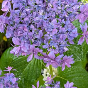 我家の【アジサイ】 ①歌合わせ(紫💜でお気に入りです) ②名前は分からないけど、この子も紫💜 ③恋物語(早咲きなので汚いところを切って、、、) ④この子も名前が分からず😅我家では、珍しい白花🤍 ⑤名前分からないけどピンク🩷が可愛い😍