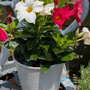 ベランダの花たち ①少し小さめの🌺が可愛くて色も少し薄めなの(少しってところが可愛くて) ②③サンパラソル❓️マンデビラ❓️(どっちか分からない蔓にならないタイプ) ④明日は咲きそう(この🌺良く咲いてくれます)
