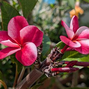 ①2本目の【プルメリア🪷】(エルシー) 濃いピンクに白が可愛い🥰💕 ②【ブッドレア💜】まだ咲き始め