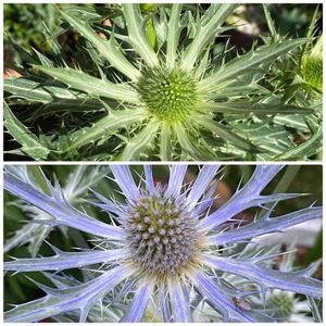 エリンジウム 色付いてきました ♡ ⬆️ 5/29 ⬇️ 6/8 成長が、ゆっくりしたお花です