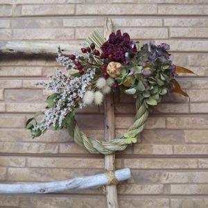 しめ縄リース2個目完成! アジサイ グレビレアゴールド 芍薬 ダスティミラー ナンテン パルブラユーカリ すべてドライフラワーです 今日、嬉しい知らせが📨 インテリアグリーンフォトコンテストで受賞させてもらいました😊皆さんのお陰です! いつも、いいね!コメントありがとうございます🙇🙏🙏🏻😆感謝(*´∀`人)感謝