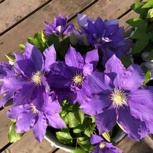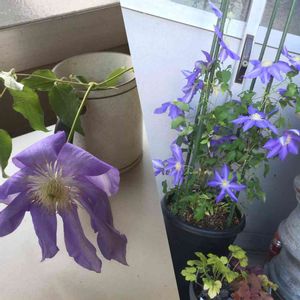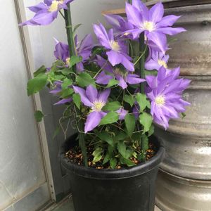 昔、義母が「買って2年目だけど、今年は1つしか花が咲かなかった。花はもう終わったけど良かったらあげる」と鉢植えのこのクレマチスをくれました。もらって大きめの鉢に植え替えたら1か月後、40輪ほど咲いてくれました♡以来毎年良く咲いてくれます。
